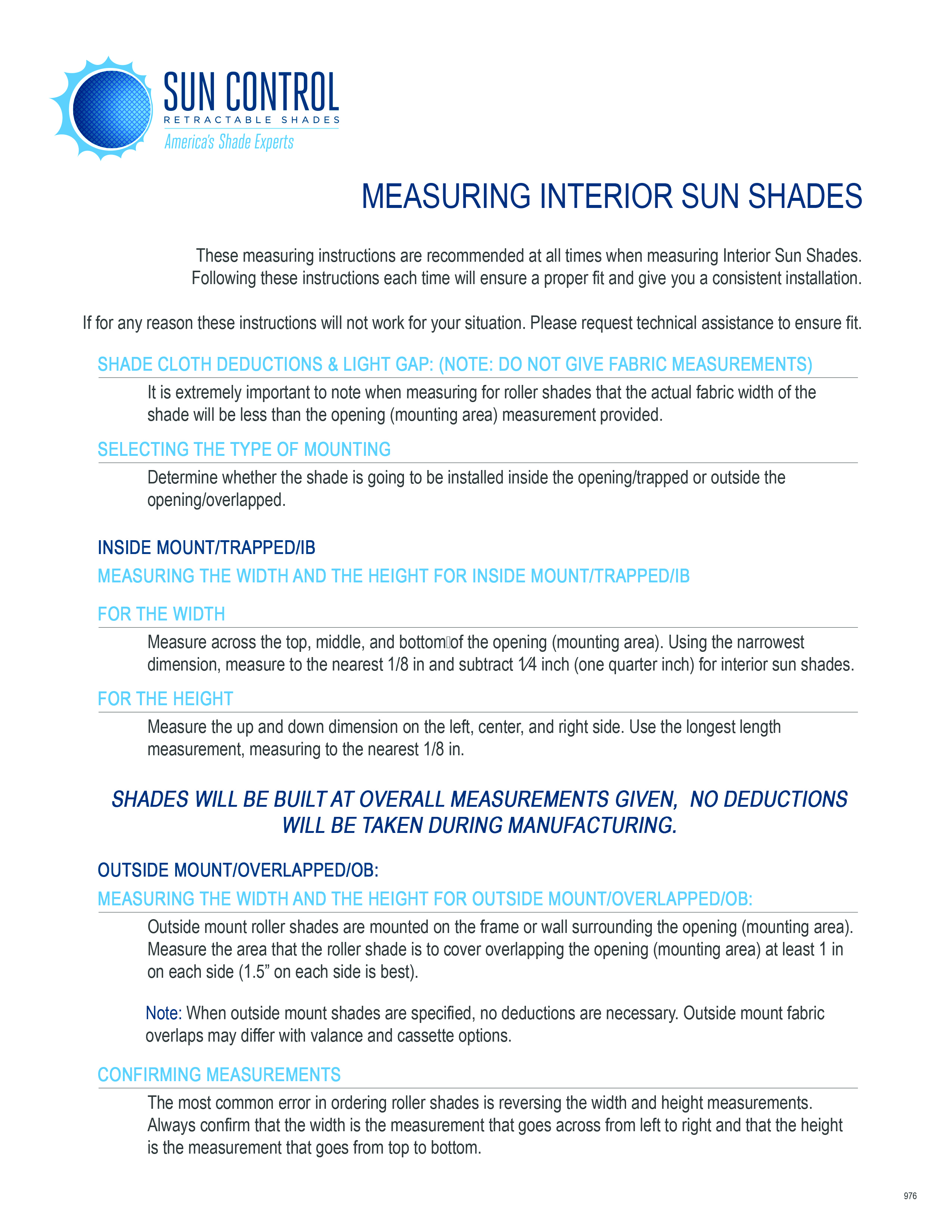 Interior Sun Shades Measuring Instructions
